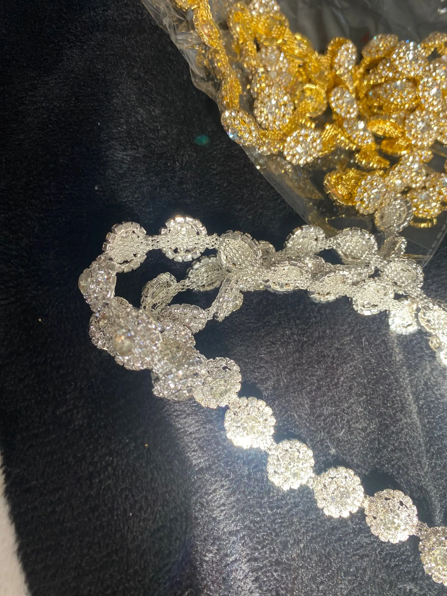 1 ярд 0,39 дюймов ширина золотого и серебряного цвета в виде кристаллов, покрытых серебром мигает стразы отделка Ленточные металлической цепью для изготовления сумок, аксессуары для обуви ML031