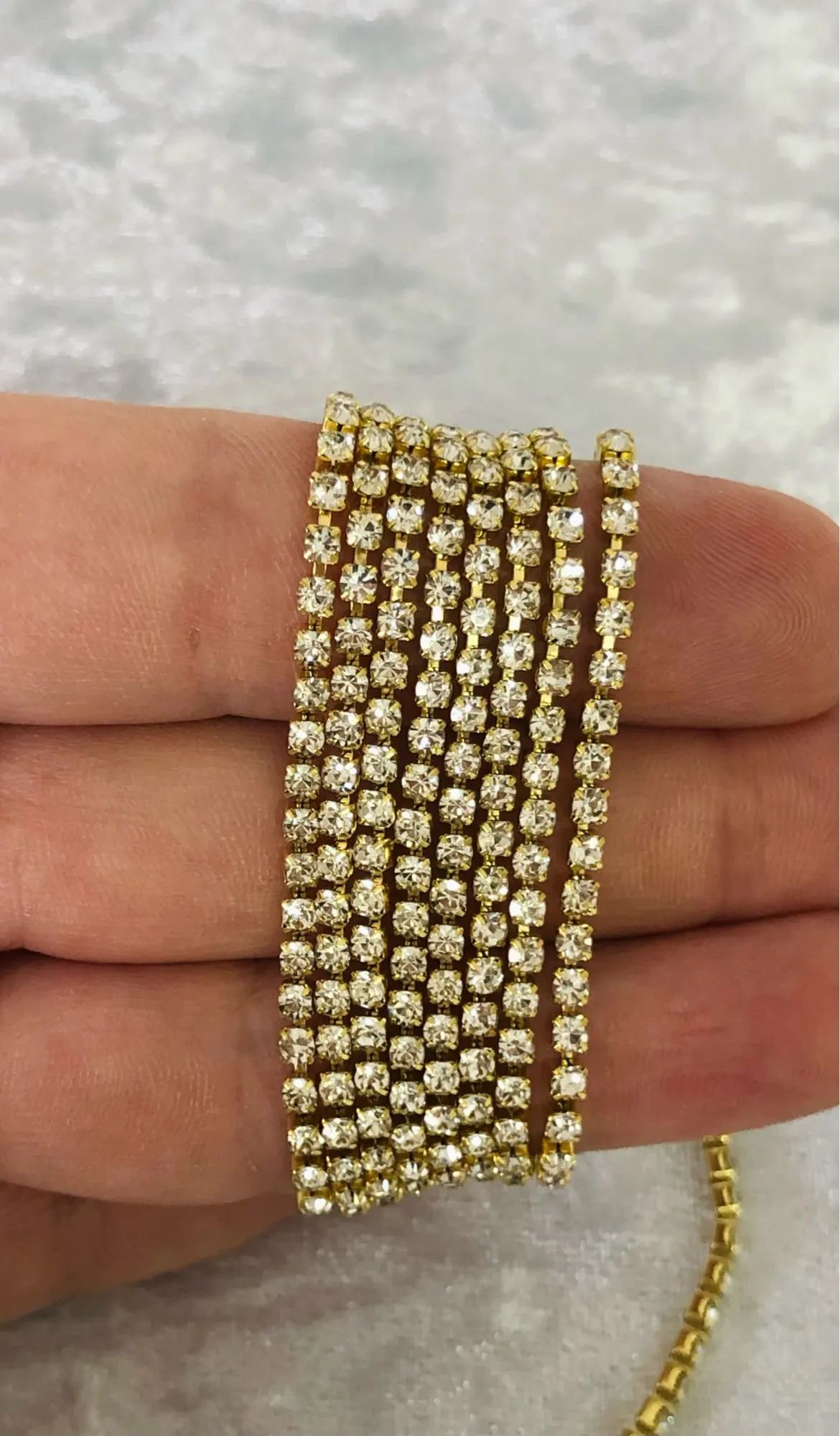 Стразовая лента очень красивая, переливается каждый кристаллик! С продавцом не общалась! Заказывала 18.01.2021, а пришло 12.02.2021! Буду заказывать ещё! Рекомендую всем!