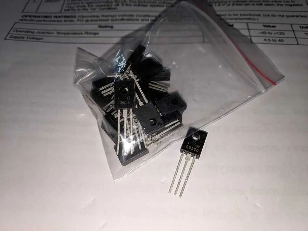 Йшло рівно місяць до Києва. Кількість 10 шт як вказано в описі. Але що це за транзистори - не відомо. По фірмовому datasheet від Sanyo, 2SC3950 мають коефіцієнт передачі від 40 до 200. З тих що прийшли лише один транзистор має коефіцієнт трішки більше 200, інші 5 шт близько 300 і ще 4 шт понад 400-440. Нажаль, зараз не маю змоги протестувати їх в реальній ВЧ схемі.