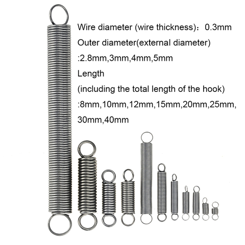 10 шт. 304 Нержавеющая сталь двойной крюк небольшой Натяжной пружины аксессуары проволока Диаметр 0,3 мм наружный диаметр 2,8 3 4 5 мм Длина 8-40 мм