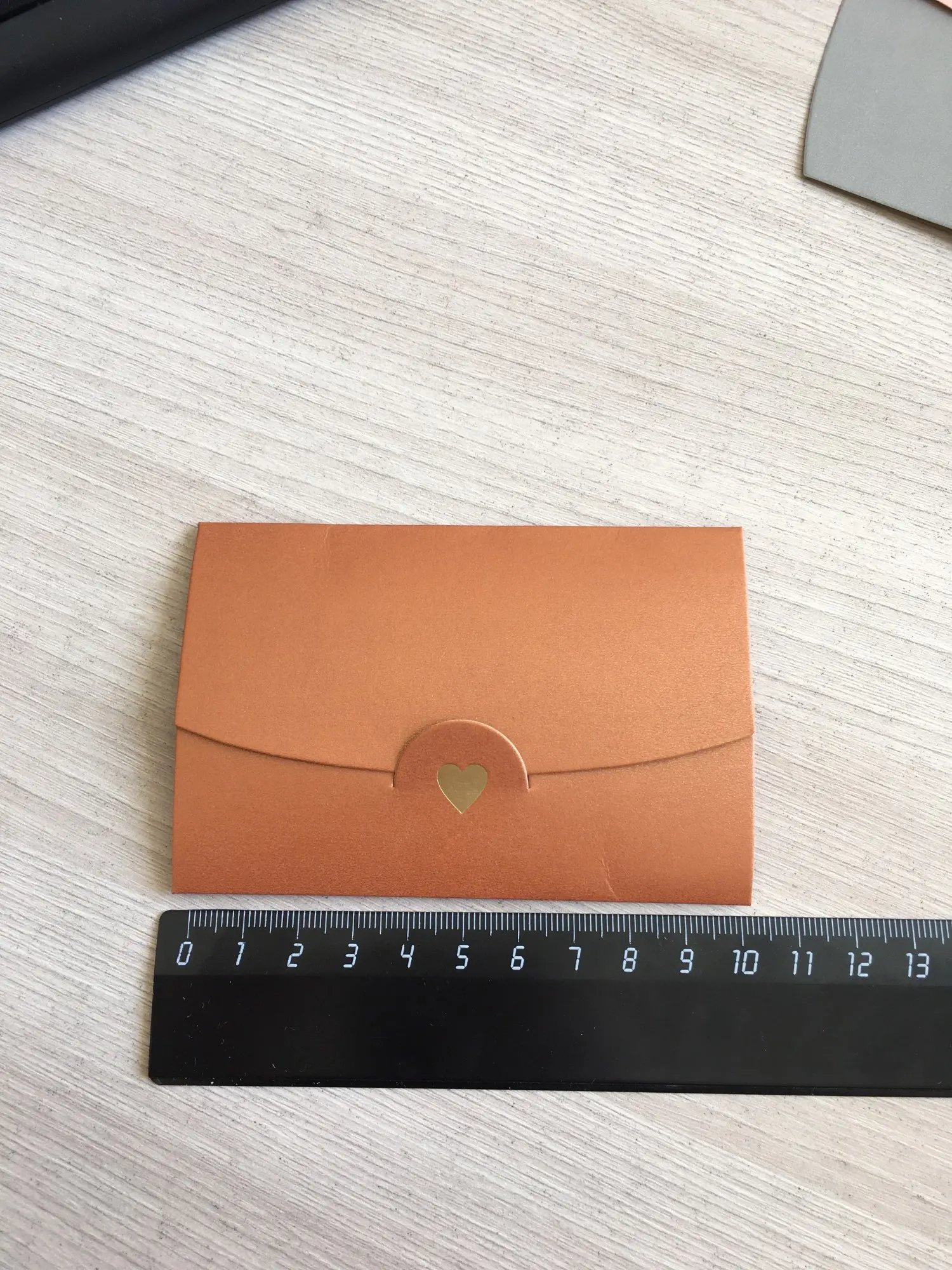 Очень маленькие конвертики. И очень милые. Для моих целей как раз подходят! Бумага - тонкий картон, форму держит отлично! Посылка пришла довольно быстро.