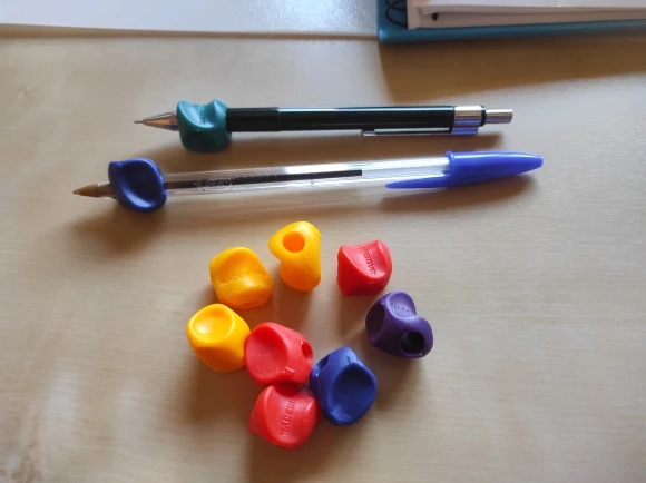 очень удобно для детских пальцев. помогает сформировать навык письма. только не все карандаши пролезают в дырку. узковато. шло долго. около месяца