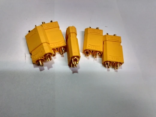 Разьемы отличные. Соединение плотное. Моё мнение XT90 самые надёжные коннекторы. В одном заказе пять пар. Доставка в Москву составила около 2-х недель. Заказ был объединен с другими заказами и прибыл в пункт самовывоза посредством DPD. Всем рекомендую.