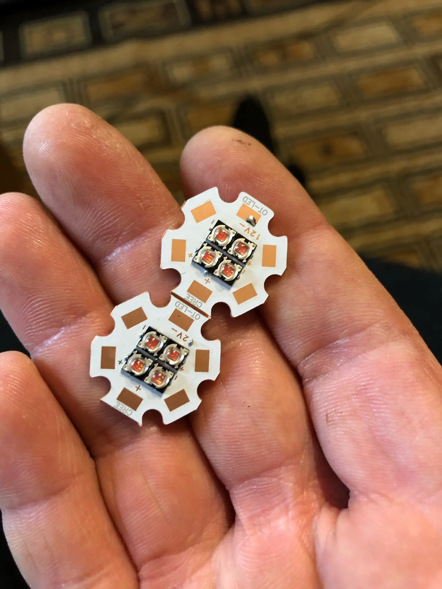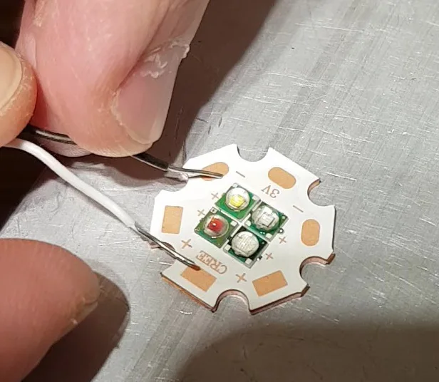 Быстрая доставка, три недели, аккуратное исполнение, припаяно всё ровно, все 4 светодиода даже при низком напряжении 1,6В и токе светятся одинаково, т.е. могут работать параллельно при полной нагрузке и имеют высокий КПД. Из минусов лично для меня-это длина волны, фактически 620-630 нм, я хотел 660 нм, для растений нужен именно он.