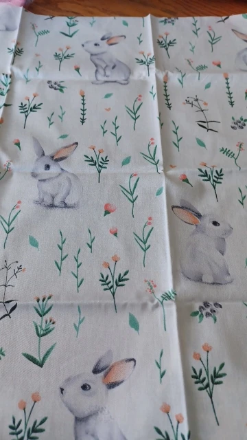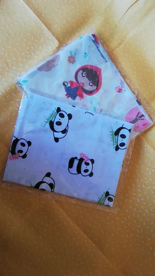 Очень милые тканюшки, сатин. продавец положил лишний кусок ткани. не знаю в подарок или ошибся?)