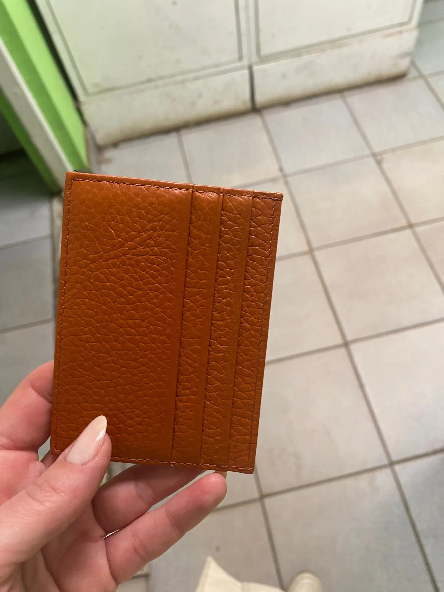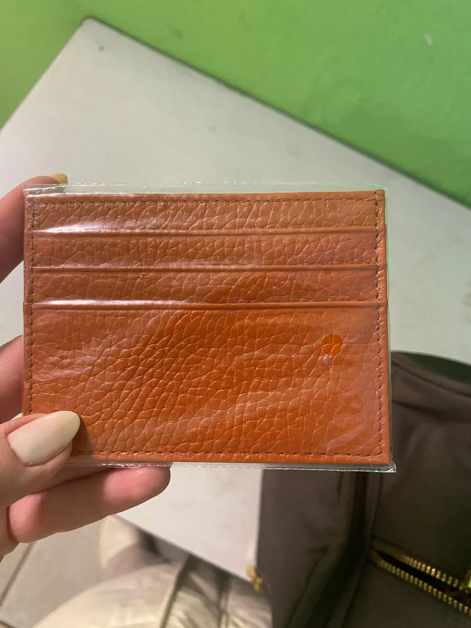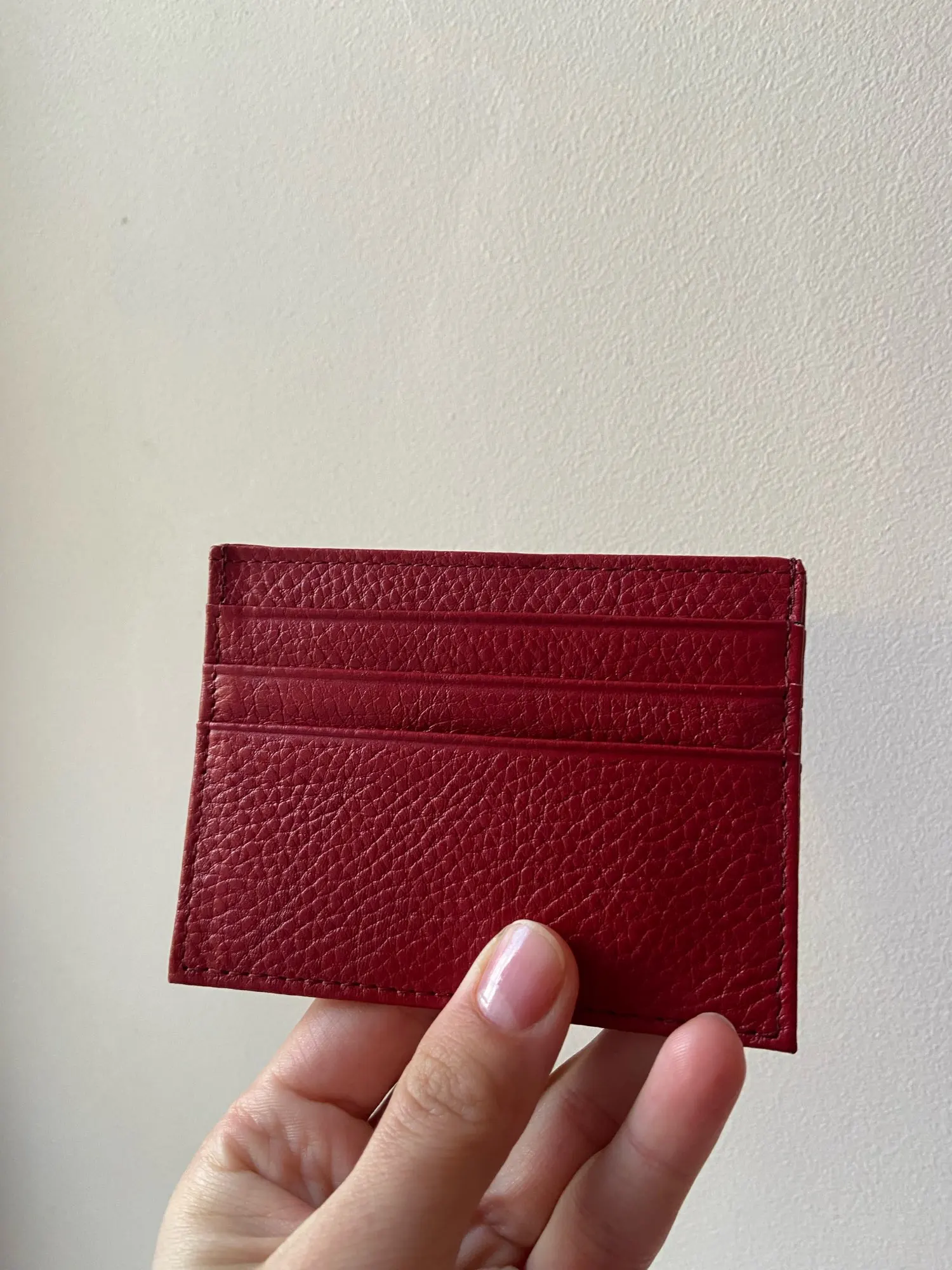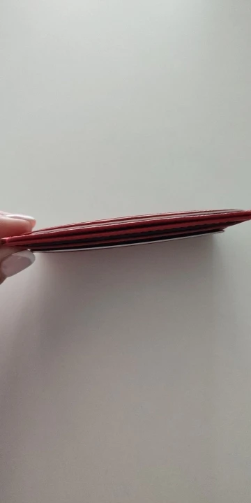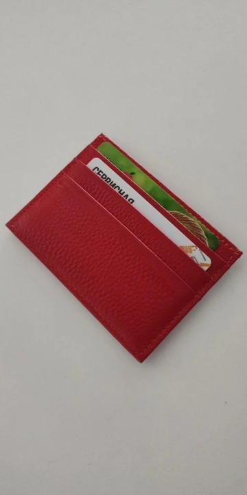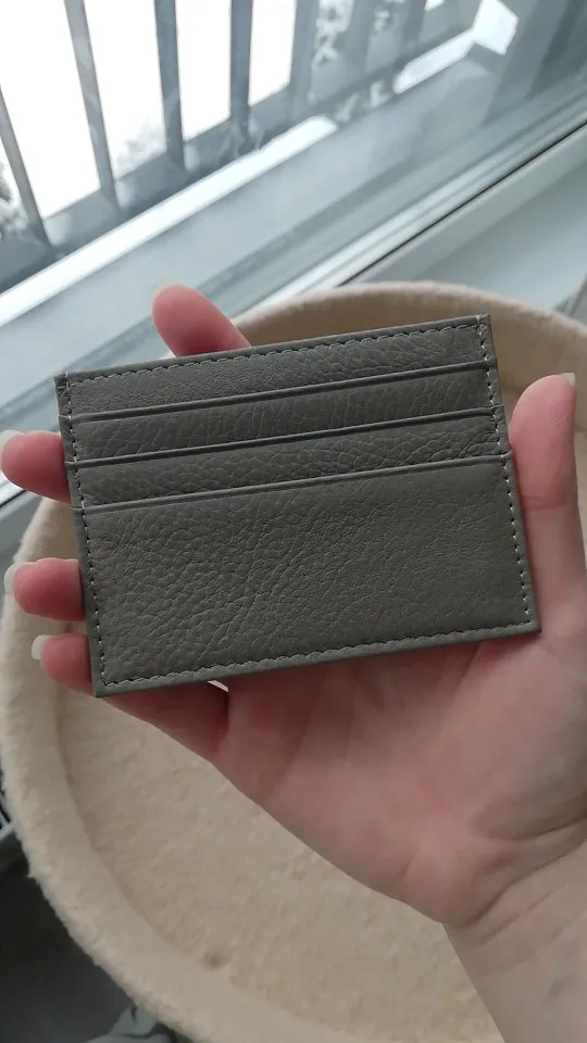 Красивый, как на фото, но сразу предупреждаю, если во все отсеки положить по карточке, то в центральный отсек уже будет не залезть, очень плотно из-за карточек он прилегает. Так что подойдет, если не занимать все прорези для карт. Само качество понравилось!