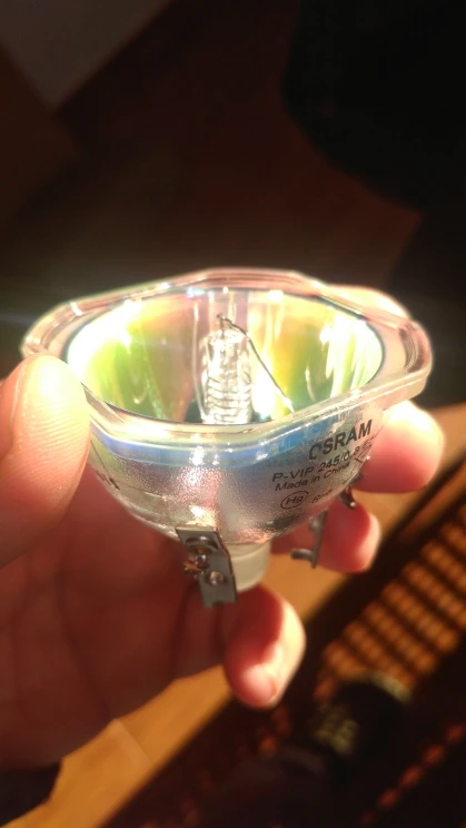 Товар пришел быстро.По яркости в эко режим ярче в два раза старой лампы которая отработала 1200ч и потускнела.(старая лампа была не осрам)