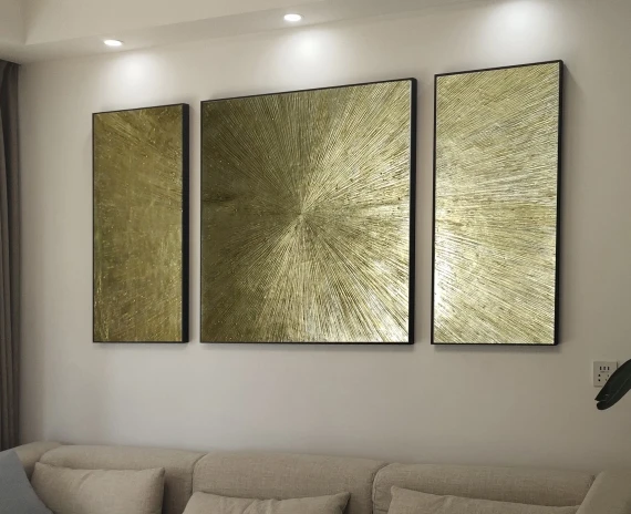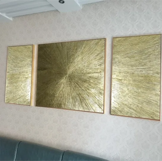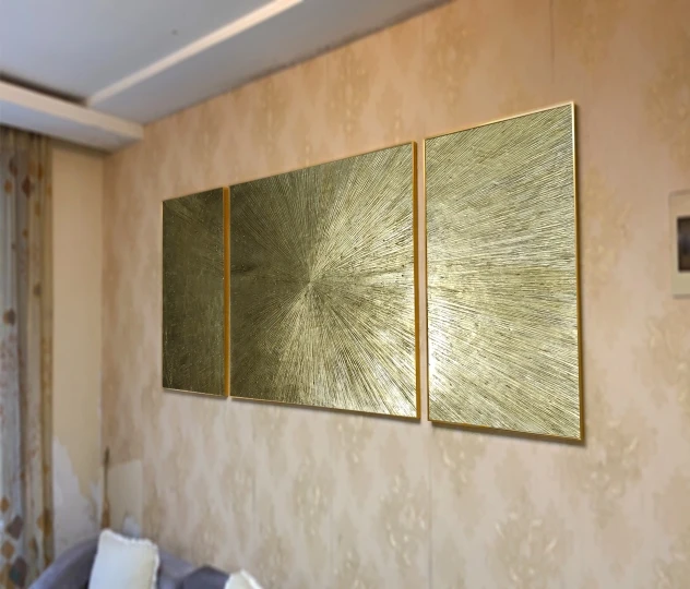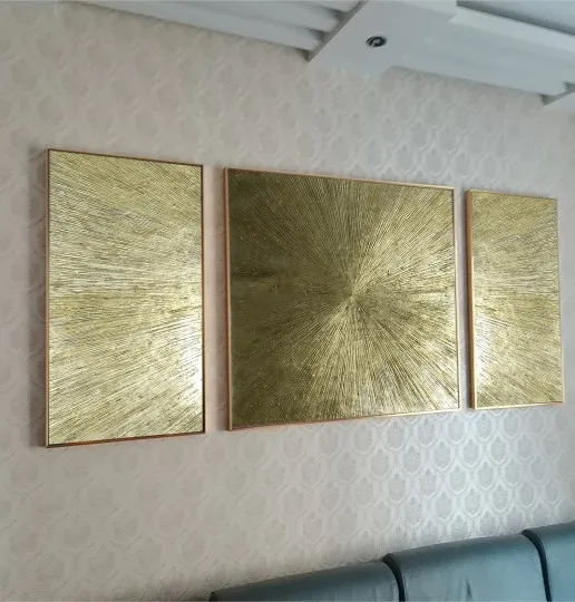100% ручная работа, Современная золотая линия, картина маслом на холсте, 3 шт./компл., абстрактная Настенная картина золотого цвета для комнаты без рамки