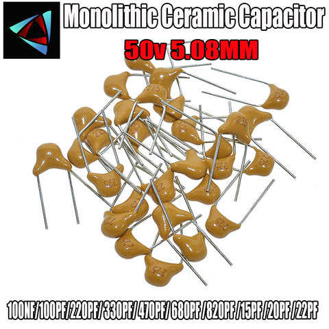 100 шт. 50 в Монолитные керамические конденсаторы 100NF 100PF 220PF 330PF 470PF 680PF 820PF 15PF 20PF 22PF 821 681 471 221 101 104