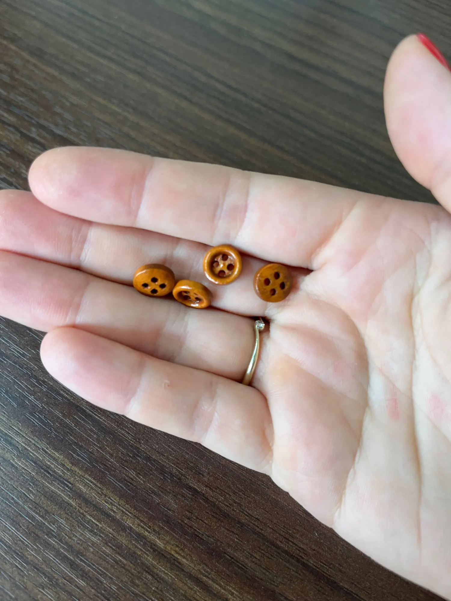 100 шт. 8 мм маленькие коричневые деревянные пуговицы с 4 отверстиями для рукоделия блестящая Кнопка WB532