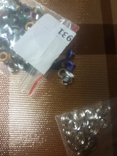 хорошие на вид люверсы из двух частей, размер как и заявлено 3мм, чуть больше оказалось - 104) цветные, количество и цвет как в ассорти, в деле еще не пробовала, но думаю что установить удастся) доставка до Нижнего Новгорода месяц, отправили быстро) буду заказывать снова)