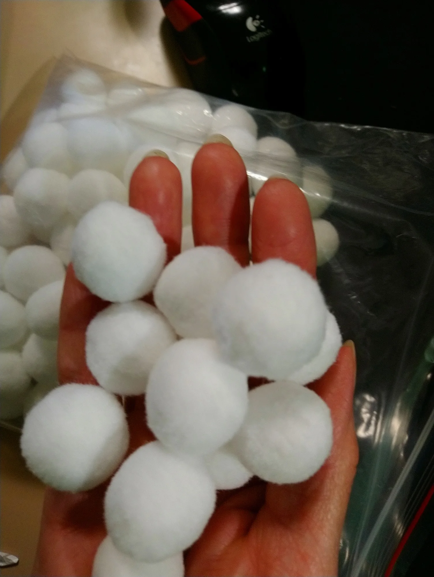 Много маленьких разноцветных мягких шариков из искусственного меха. Всё как в объявлении.