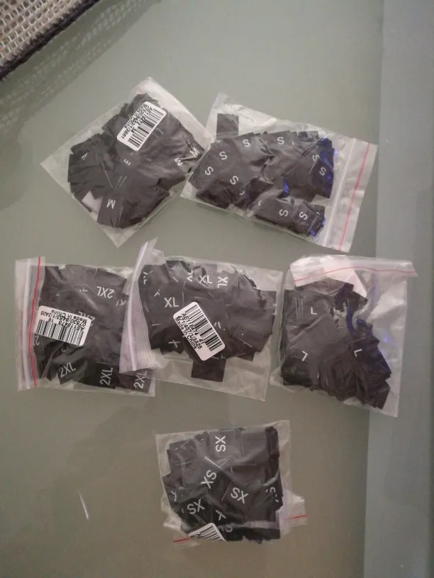 100 шт., ярлыки для размера одежды, черный текст, белая одежда, одежда, футболка, платье, ткань, ткань, ярлык, ярлык XS, яркость