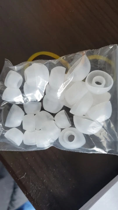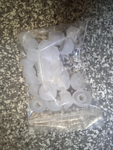 Супербыстрая доставка: меньше трех недель от дня заказа, меньше двух в дороге, пришли на отделение Новой почты. И это для посылки меньше чем за доллар! Качество нормальное, мягкие. Мне подошёл средний размер. Внутренний диаметр большой, на проводных Панасониках сидит как влитой, на беспроводных Басеусах болтается, хотя и не слетает.