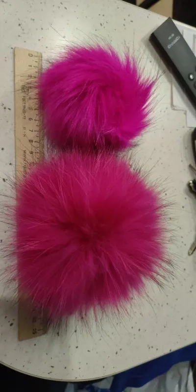 (12 см) "сделай сам" с искусственным меховым помпоном, головные уборы, отделанным натуральным лисьим с маленькими пушистыми помпончиками для шапка с пушистым помпоном, ручная работа, большой волосы мяч шляпа с резиновой лентой