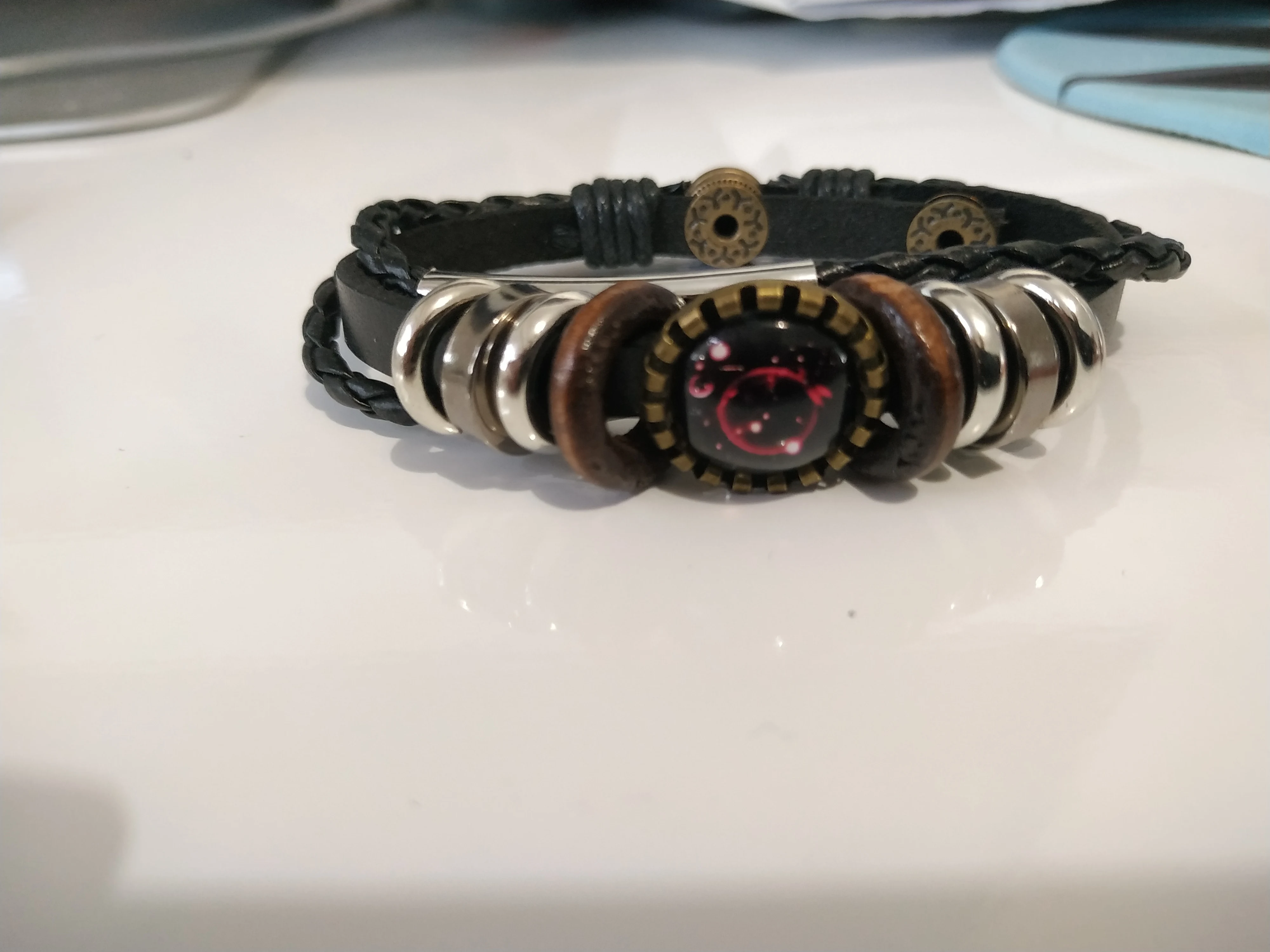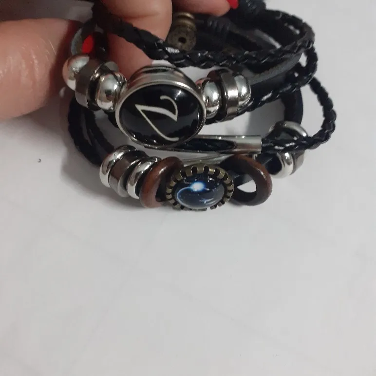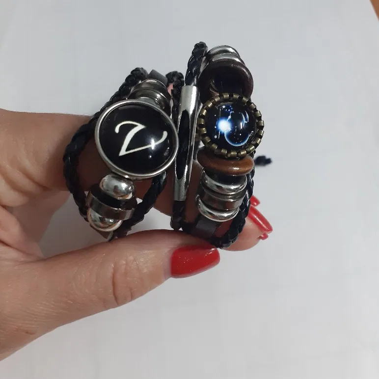 12 созвездий знак зодиака черный плетеный кожаный браслет Рак Leo Virgo весы Тканые Стеклянные купольные украшения панк мужской браслет