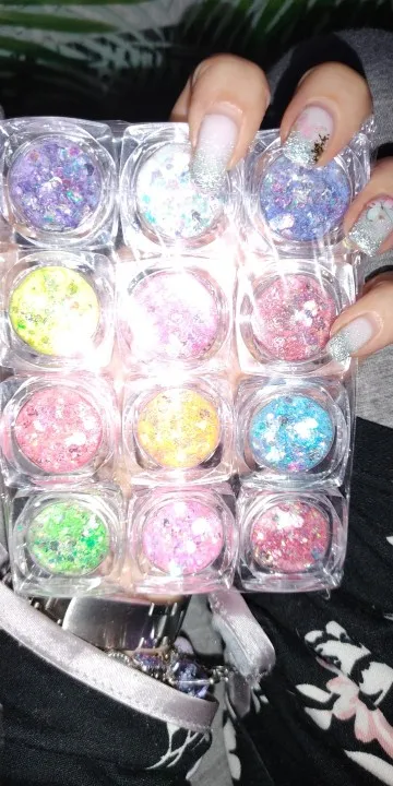 12 цветов 12 Горшков для дизайна ногтей блестящие массивные блестки радужные Русалочки ультратонкие Единорог блёстки шестиугольные Блестки (8 стилей)