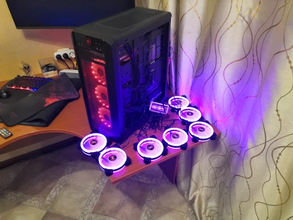Товар хороший, качественный, есть разные режимы подсветки и скорости вентиляторов. Звучат достаточно громко, но только на высокой скорости, вентиляторы явно не для тихих ПК. Продавец ооооочень не общительный, товар ехал почти 3 месяца, не рекомендую покупать у данного продавца, хотя качество товара превзошло ожидания. поищите лучше у других продавцов.