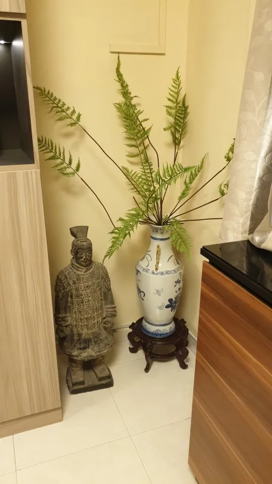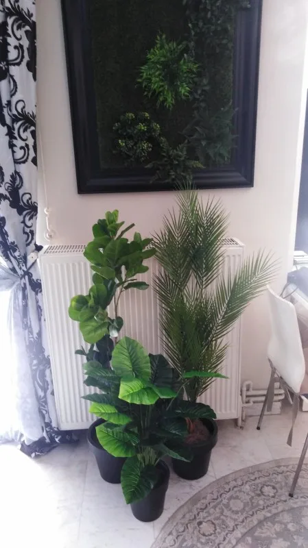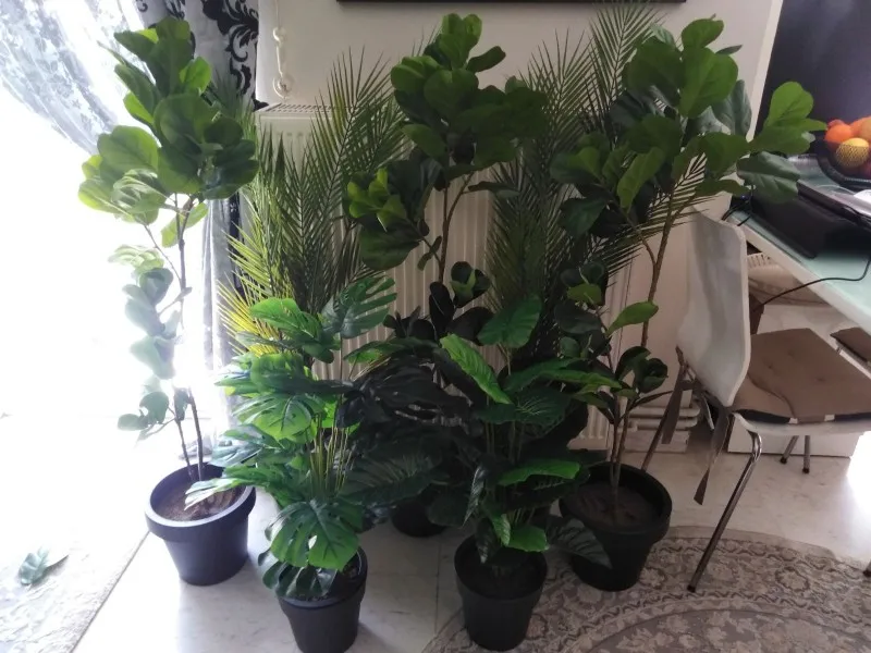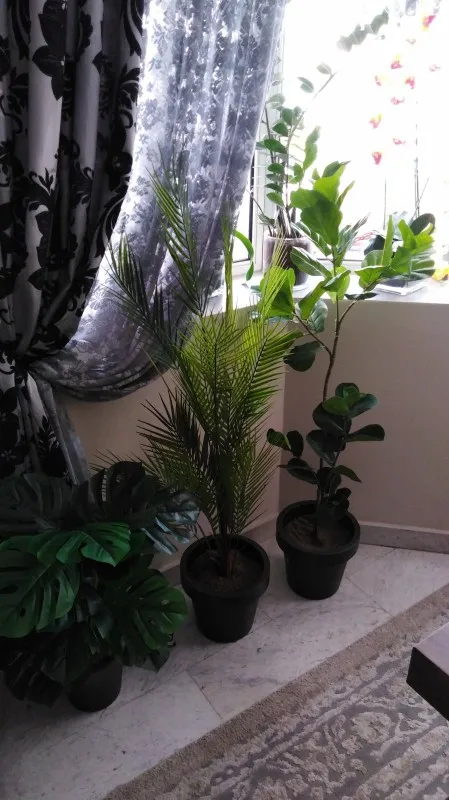 Пальма пластиковая. Очень хорошего качества. Высокая, наверно, нужно бы купить еще 75 см. Тогда она будет пушистей. Конечно, дороговато, зато можно поставить в любой темный угол и не переживать. Смотрится, как настоящая