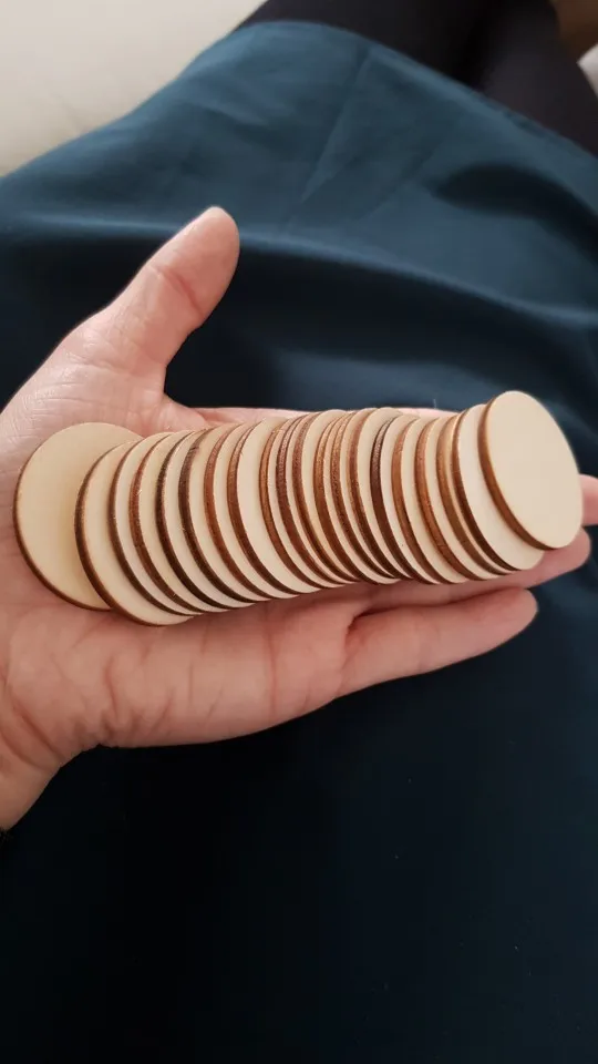 В объявлении не указана толщина дисков, и они оказались тоньше, чем я ожидал. Диски диаметром 1 см имеют толщину 1,5 мм. Брал для pnp настолок в качестве фишек - конечно, это очень тонкие. Попробую склеить по две.