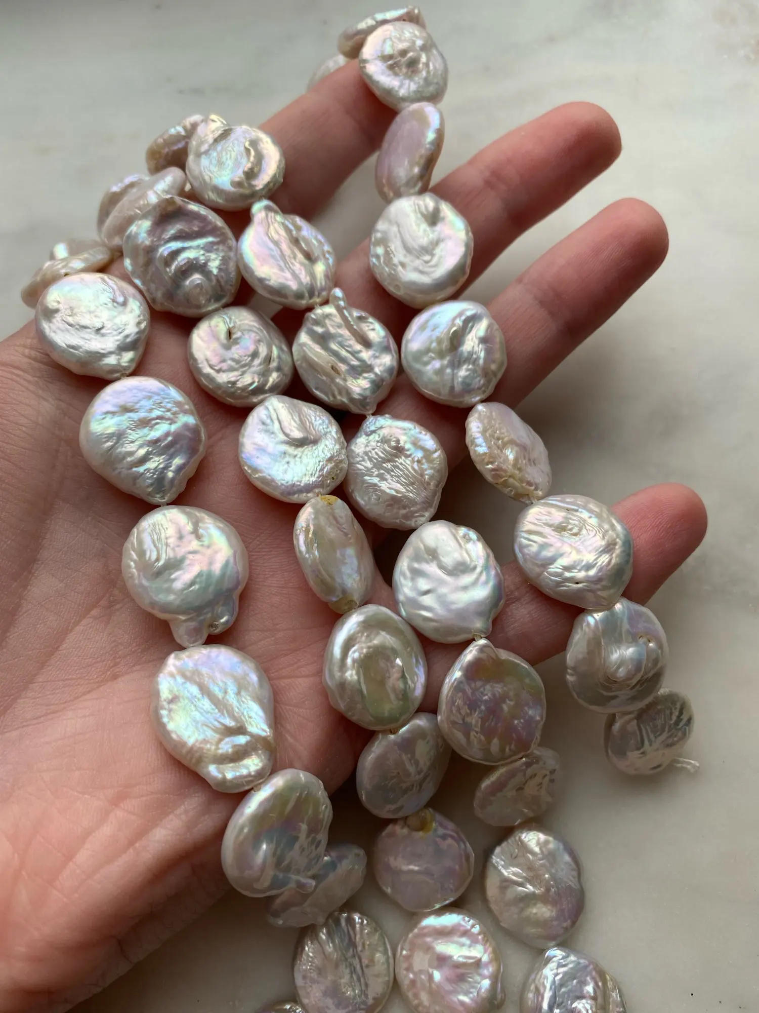 16 мм белый розового и фиолетового цветов пресноводный жемчуг для монет Натуральный камень жемчуг натуральный бусинки Браслеты Цепочки и ож...