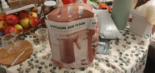 Отправлен был в сборной посылке буквально на след.день (02.01.2021) в Питер приехал через 19 дней. Спасибо продавцу. Упакован был в обычную картонную коробку и тоненький полиэтилен. Чудо, что целый. Сам термос на картинке выглядит презентабельнее. Пластик мог бы быть и получше. Есть небольшие и не бросающиеся в глаза царапины и швы на пластике. Но в целом довольна. Подходит по форме к кувшину для холодной воды. В цвет, конечно, не попала, но это не критично. На моих фото и, собственно, на фото продавца, цвет более теплый, но в реальности он темнее. Внутри есть три серых пятна (на фото видно), но кажется это технологически необходимо. Нижний клапан отвинчивается легко до определенного положения, но открыть (вытащить) его не смогла. За свои деньги неплохой кувшин (с доставкой получилось примерно 1400 рублей). Впрочем, похожий в Икее стоит 400 рублей, но там совсем неподходящий цвет и нет этой прекрасной деревянной ручки.