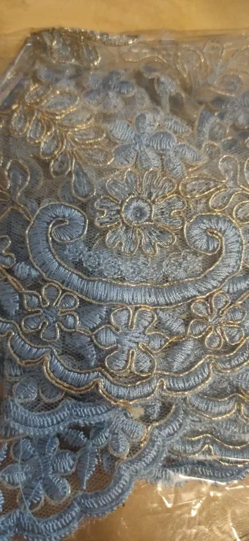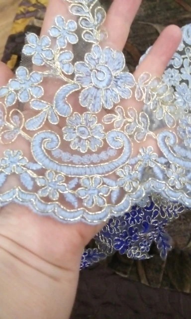 1Yd Изысканные Золотые контуры сапфировые небесно-голубые вышивки кружева обрезка платья домашний текстиль кружева «сделай сам» декоративные аксессуары 14,5 см