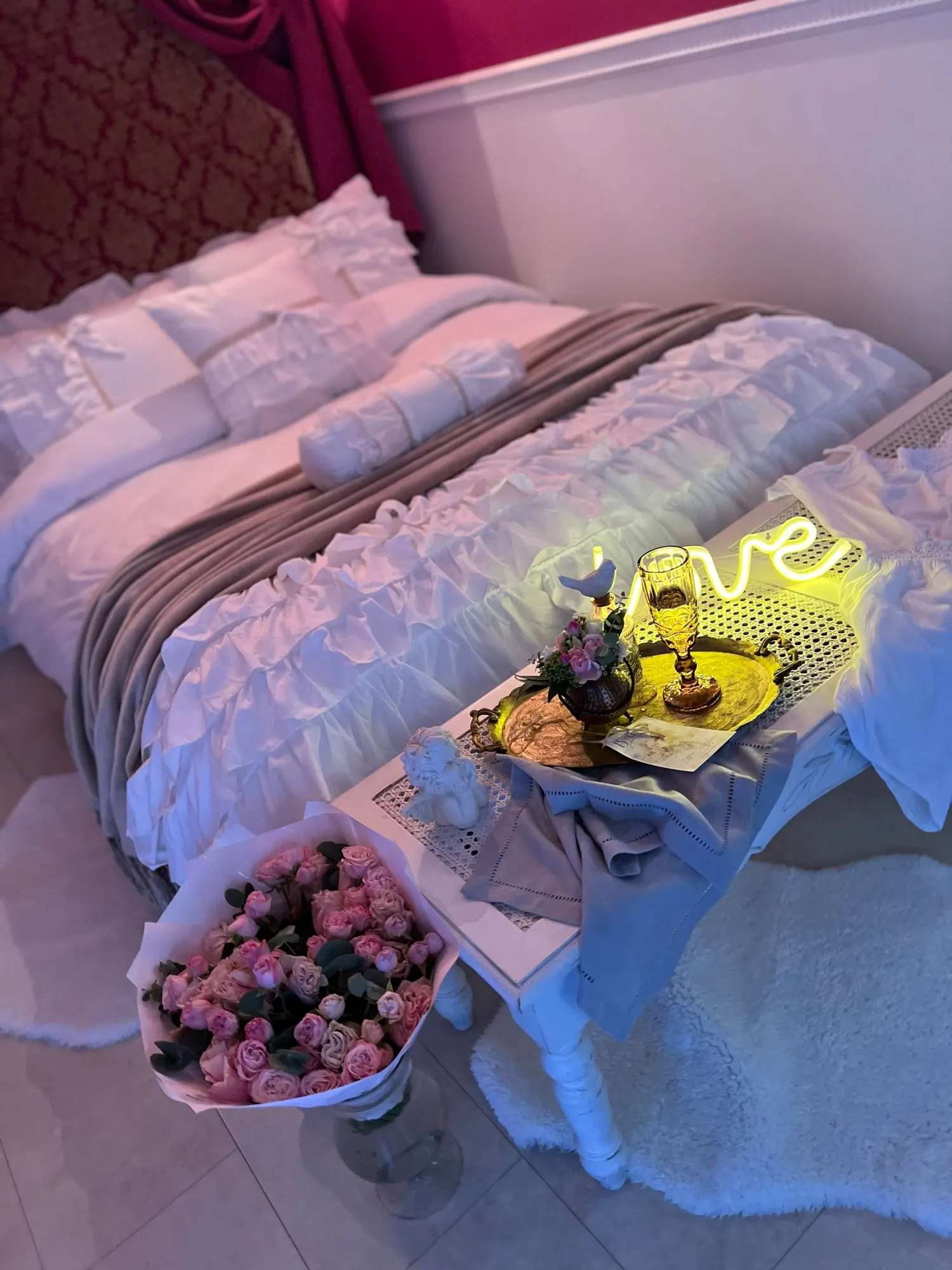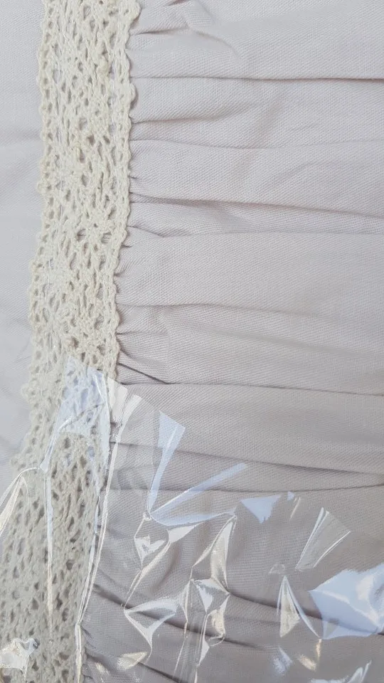 Сложно разгладить после стирки, края рюш прошиты светлой нитью.