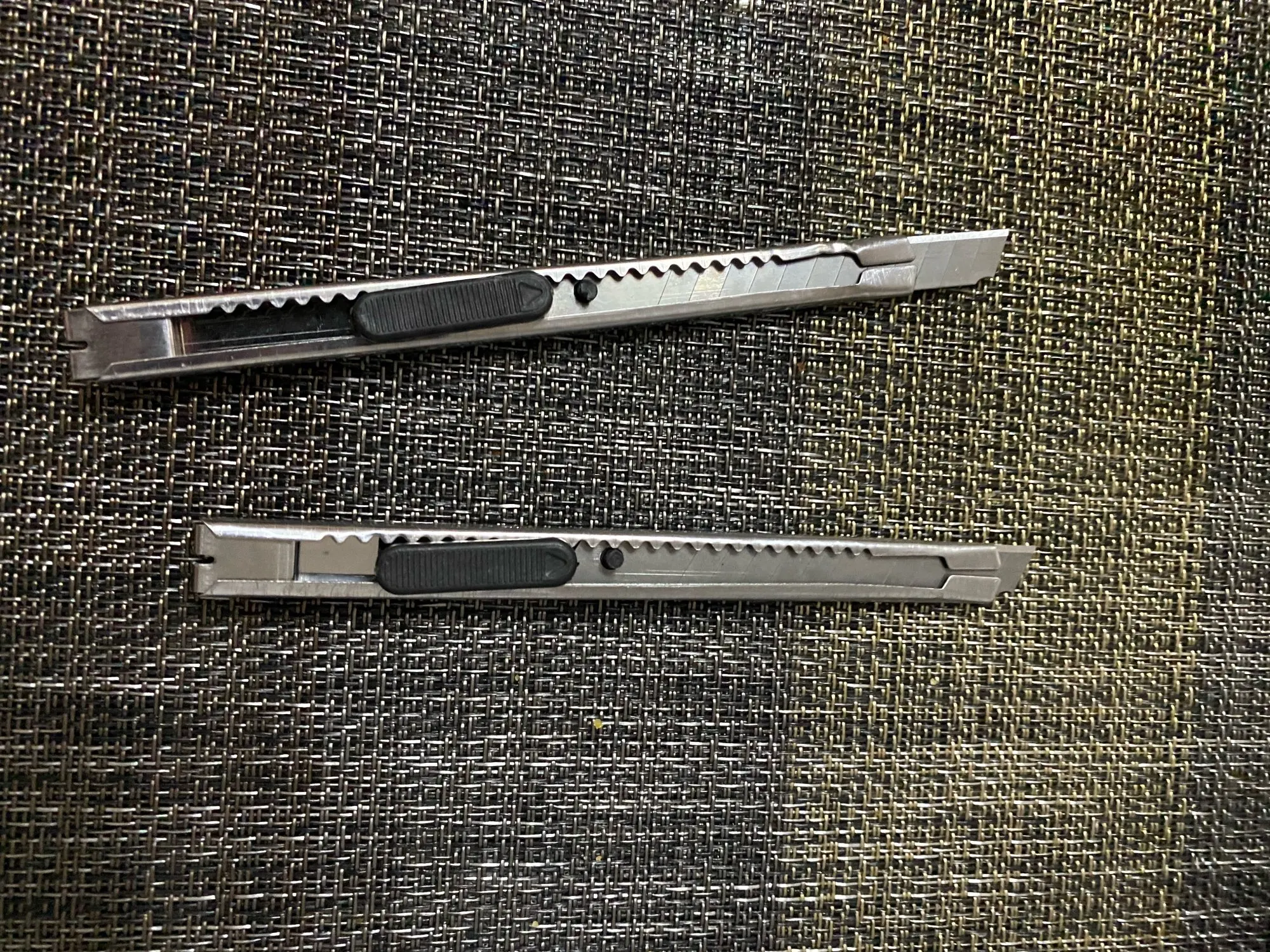 Пришло 2 штуки, нормальные ножи за свои деньги, один пришел слегка погнут, вероятно во время доставки погнули, но плоскогубцами поправил. Ножи без фиксаторов, но ползунок не хлипкий. Короче, для резки картона для рисования, вскрытия конвертов и других прикладных целей вполне нормальные ножи.