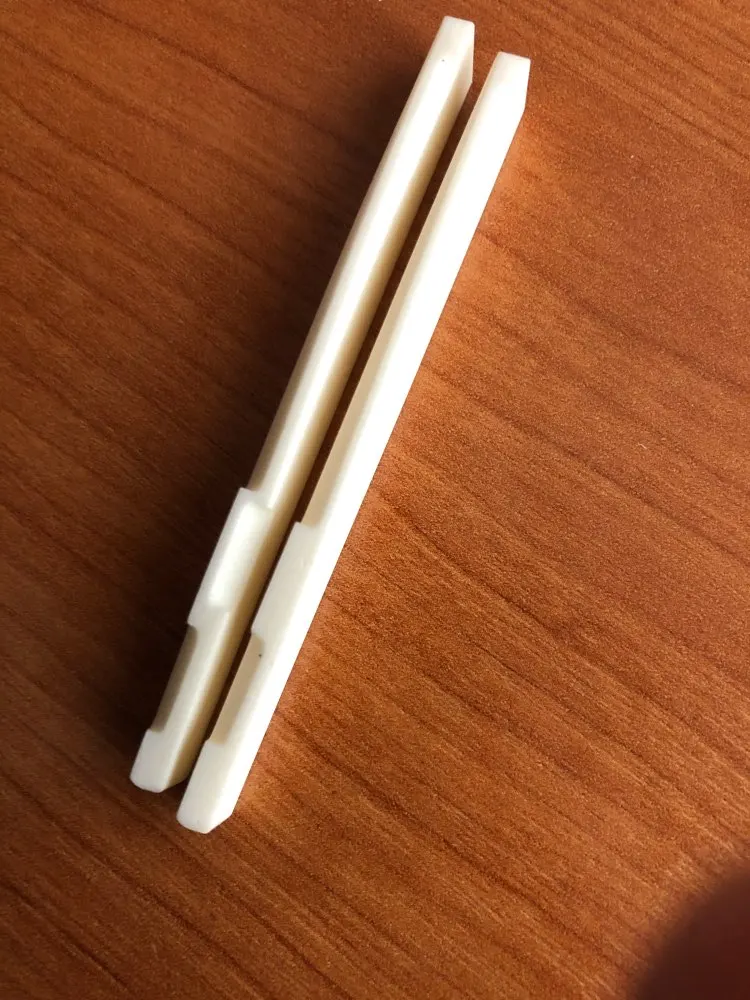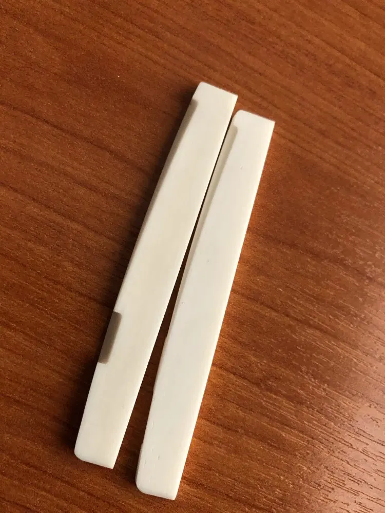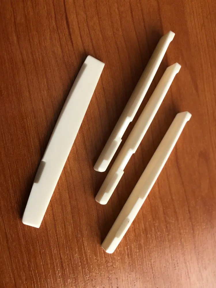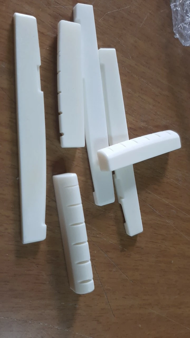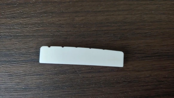 Настоящая косточка. Качество плавает. Всего заказывал у этого продавца 6 шт. и 4 верхних. 2 нижних порожка оказались с браком. На одном недостаточный пропил под вторую струну, на другом его вообще не было. Размеры от образца к образцу плавают. Все порожки имеют легкий изгиб дугой в поперечном разрезе. Видимо делают на глаз. За брак в споре деньги вернули.
