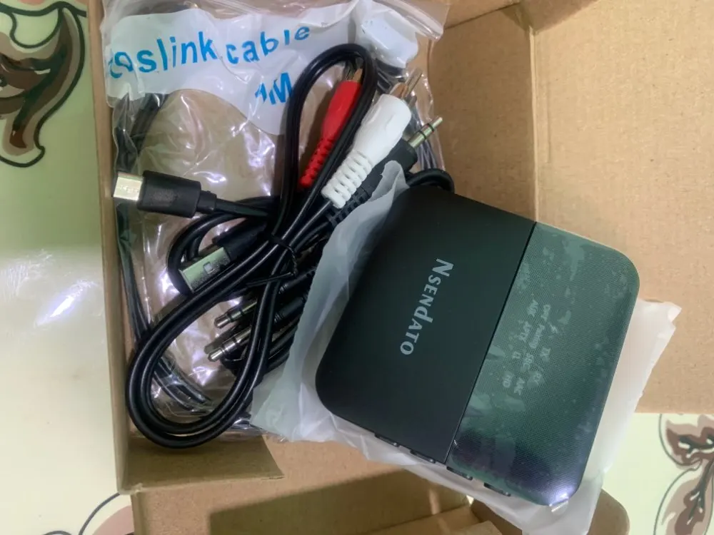 Очень достойное качество. Есть картонная упаковка, разные кабеля, инструкция на английском, немецком и китайском. Оптический кабель выглядит хлипковато. Работает и на передачу и на приём. Может подключить двое наушников одновременно. Рекомендую