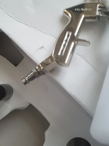 Посылка пришла вся мятоя, но вроде все детали целые. Мне не понравилось одна вещь регулировочный краник подачи воздуха- в нём нет нечего. Судя по снимкам видно что должен быть фиксирующий клапан положения борашка кранчика подачи воздуха и самого фиксатора который должен всё это держать, но этого не чего нету.