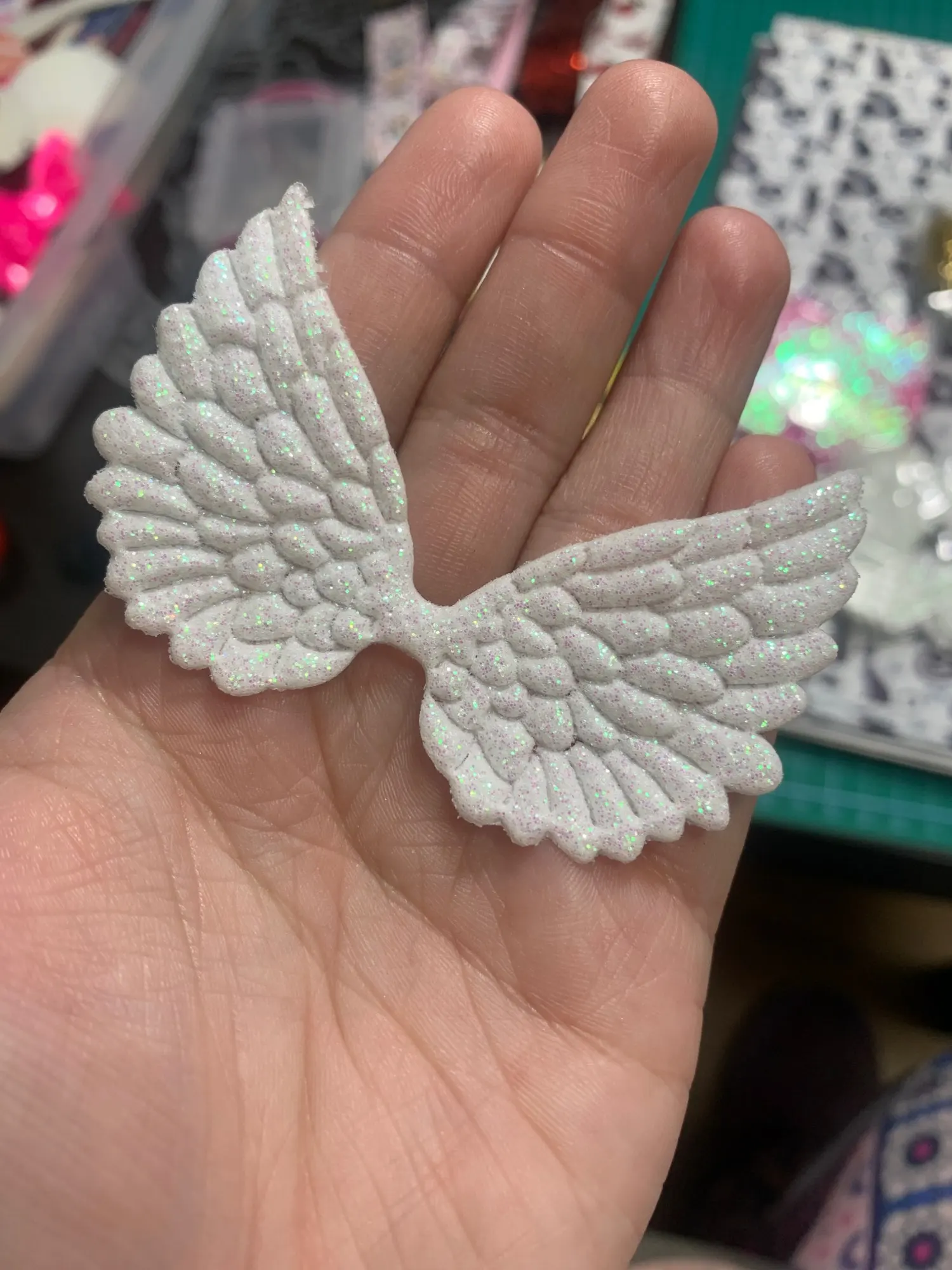 20 шт. 74*43 мм белое крыло Ангела аппликации односторонние блестящие порошки крылья феи Патчи DIY головной убор бант галстук Декор G02