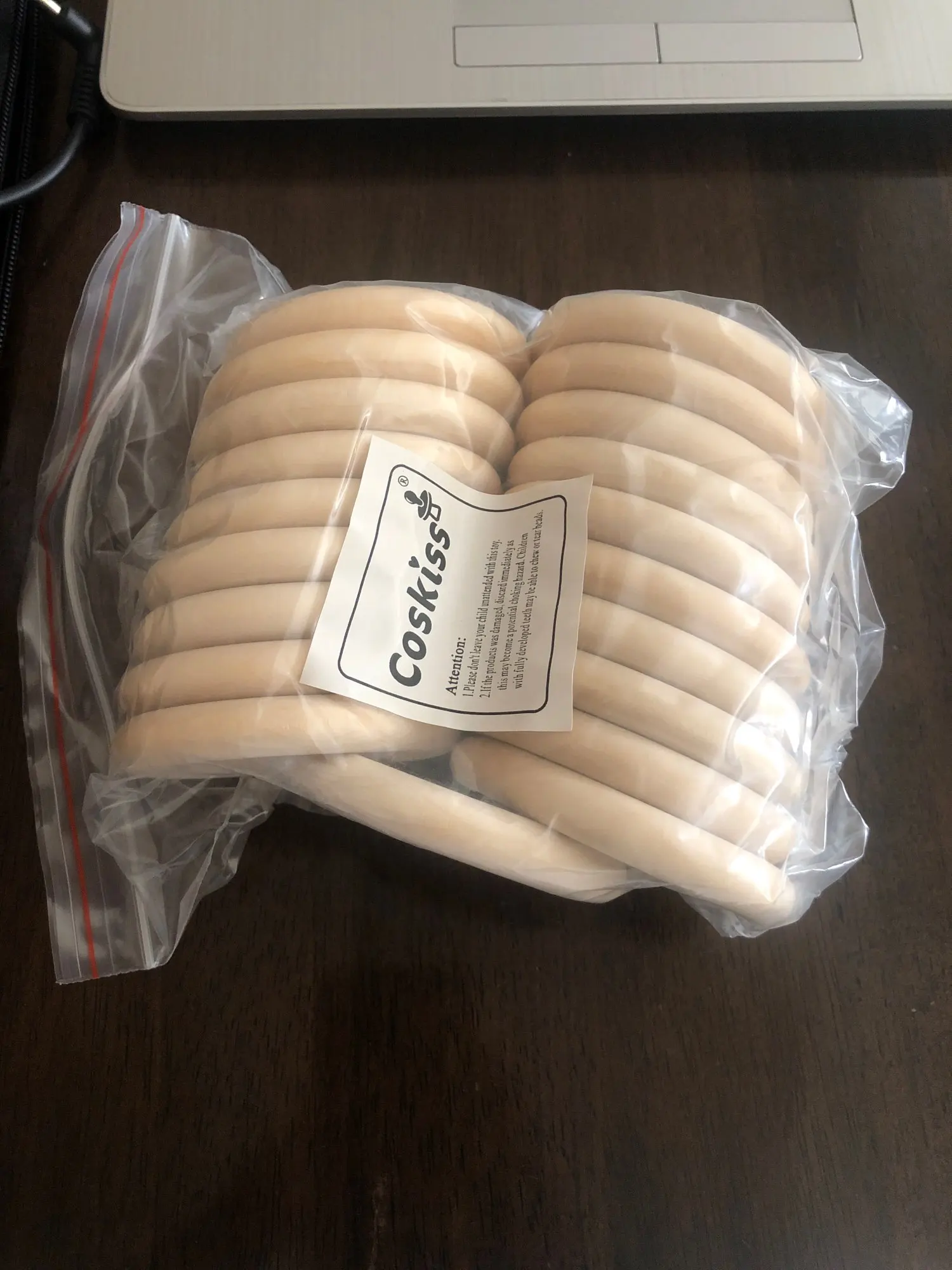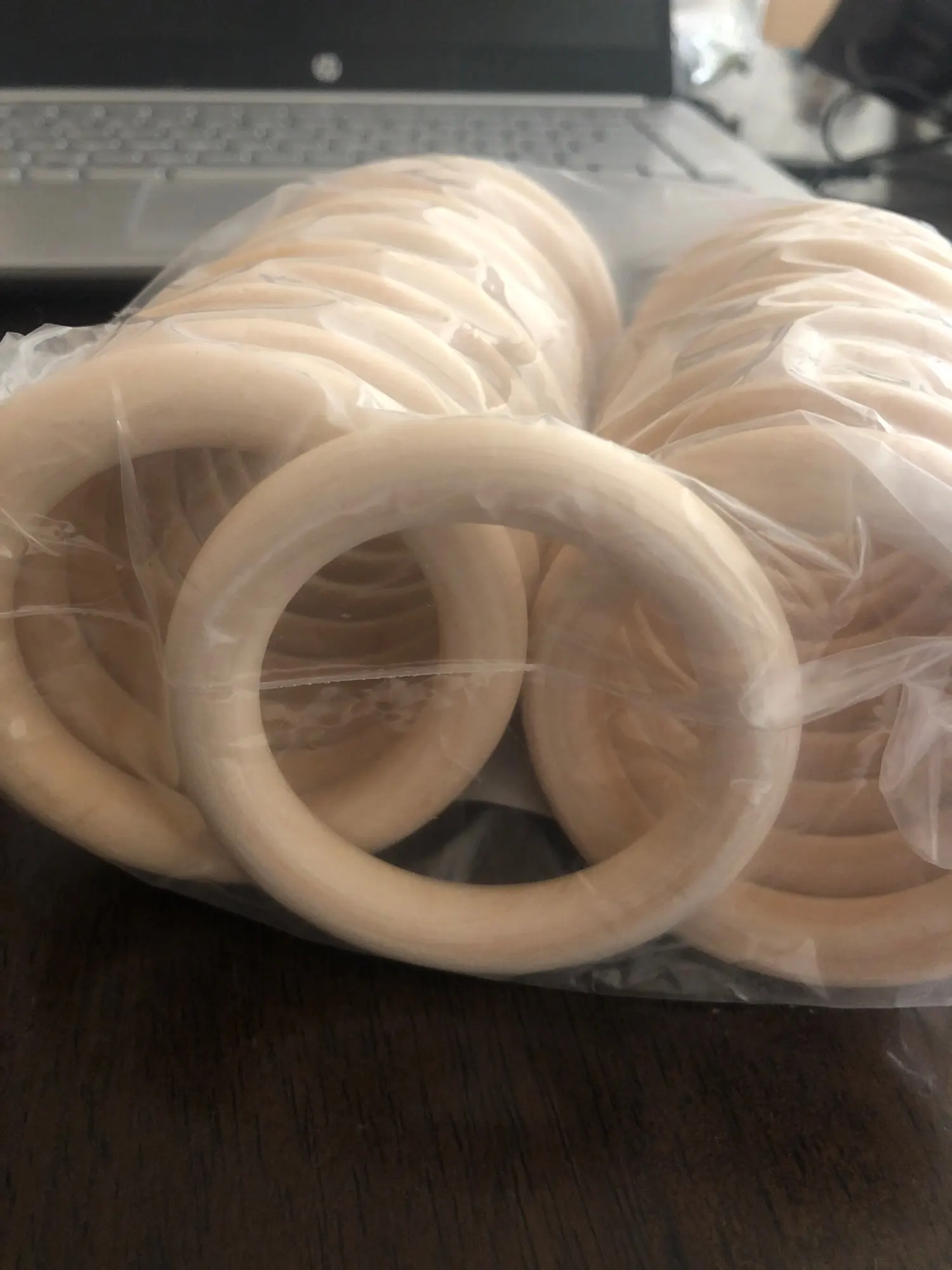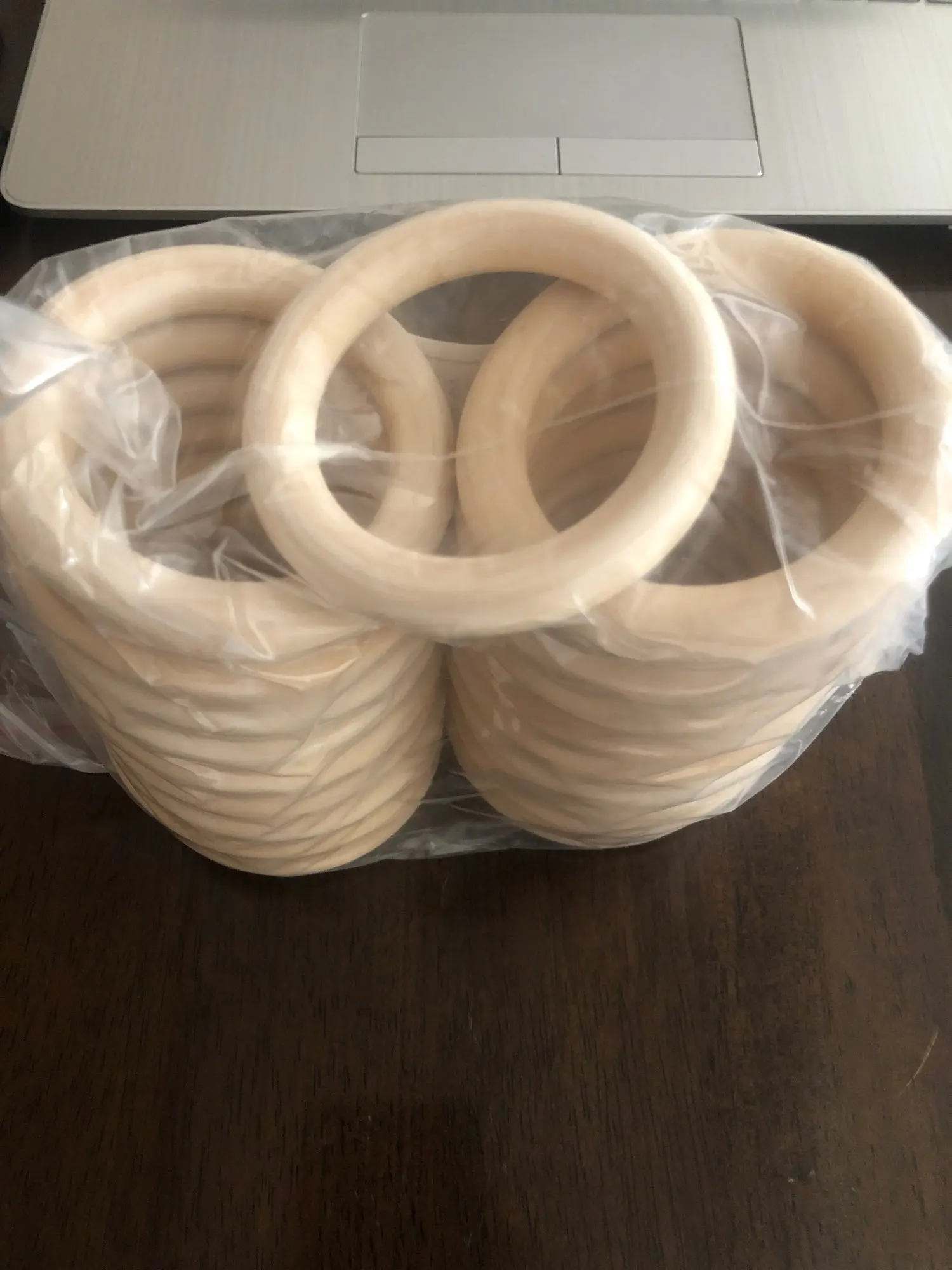 Товар пришел за месяц, колечки отличные, гладкие, пахнут деревом. Только одно кольцо поломано, хотя упаковано было отлично.