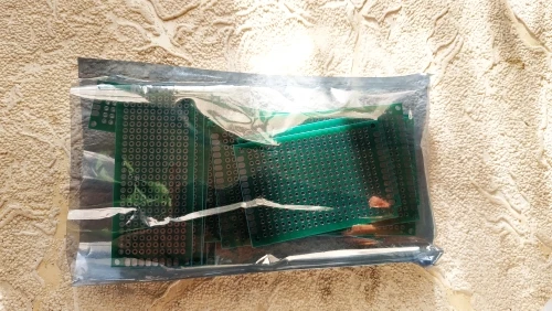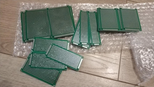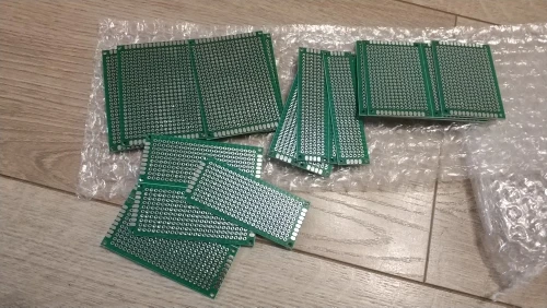Получил спустя 15 дней после заказа. Объединение с другими посылками. По качеству - количество соответствует заявленному, сами макетные платы качественные - стеклотекстолит , двухсторонний, с металлизацией отверстий, при нагреве и нагрузках ( если припаять провод и тянуть) не отрывается.