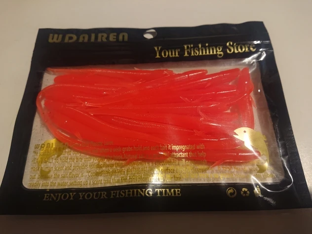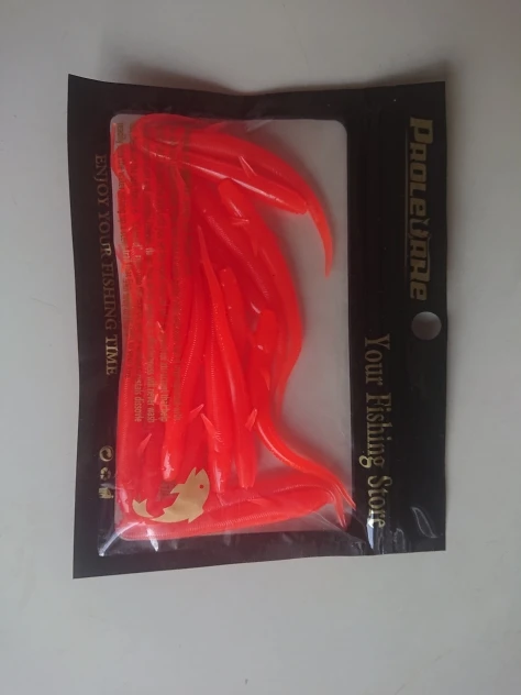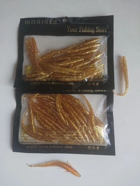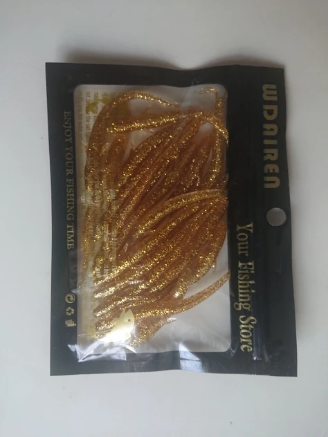 Цвет не совпадает с фото, должен был оранжевый с блёстками, а пришли золотые. Товар пришёл быстро. Формой приманки доволен, будем ловить на такой цвет.