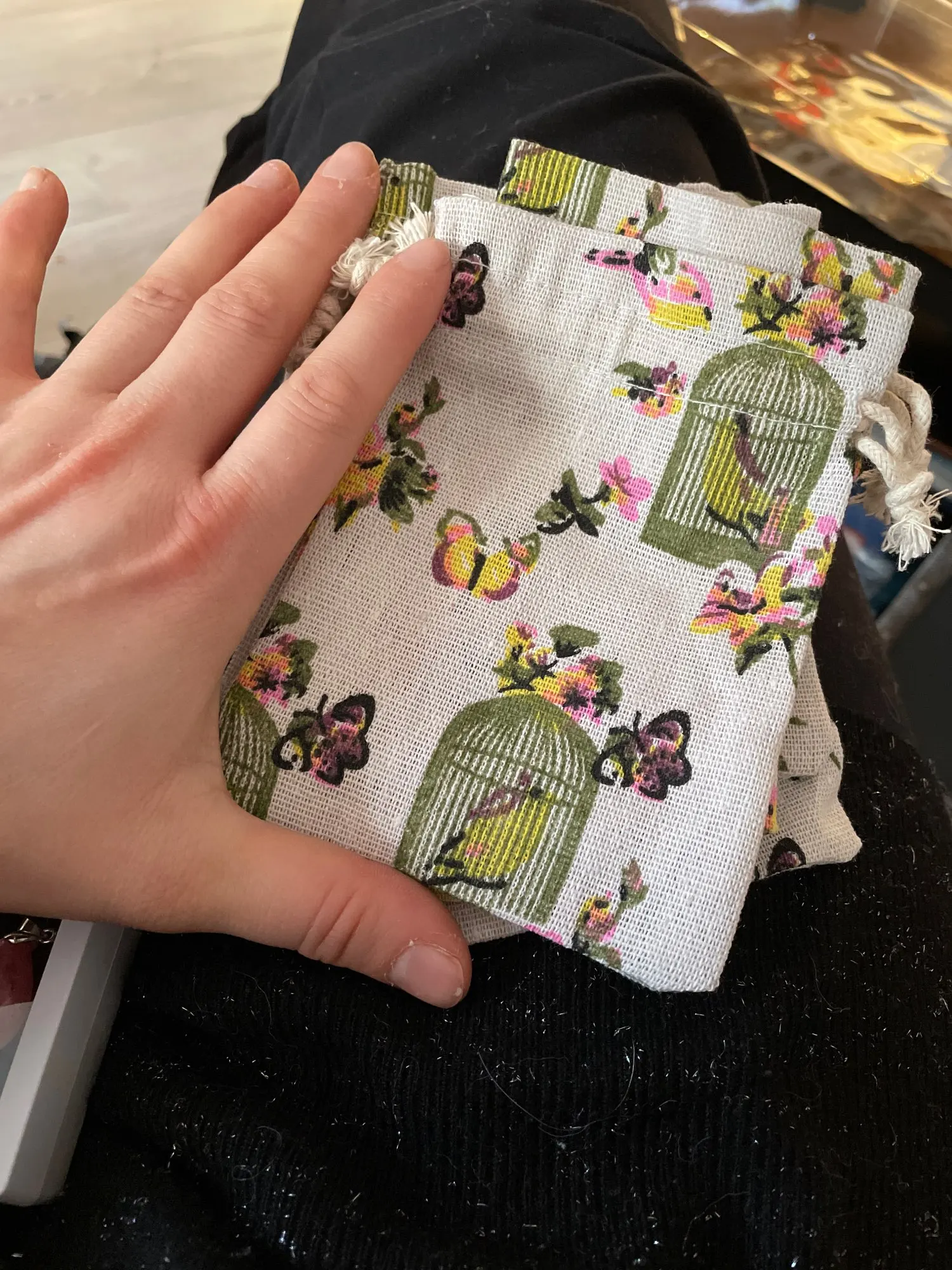Заказала 10 шт. Все пришло, но один с браком. Нить должна быть под строчкой, а она торчит из под шва. А так хорошие мешочки.