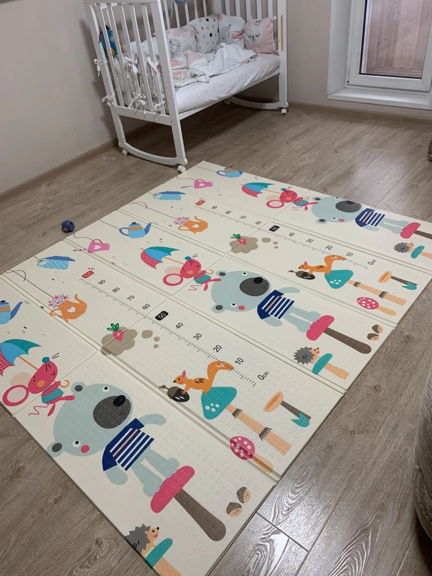 Коврик пришёл быстро, целый. НО мы не можем им пользоваться, потому что ОЧЕНЬ СИЛЬНЫЙ ЕДКИЙ ЗАПАХ! Стоит на балконе уже несколько дней, пока изменений нет. Как можно детские товары делать такого качества?!?!