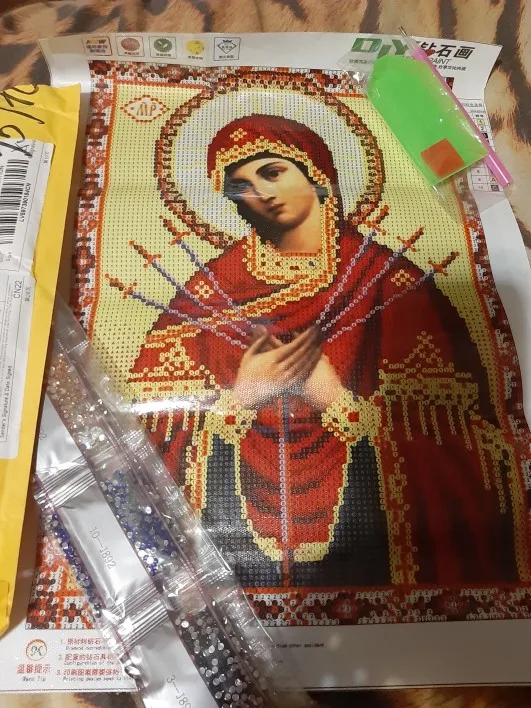 Получила вот такую икону из мозайки. Очень красивая, яркая. Стразы стеклянные с зеркальным основанием. Инструмент для работы в комплекте. Буду делать с большим удовольствием. По завершении работы вышлю фото. 11.12. заказала, 29.12. получила. Посылка отслеживалась на всём пути следования.
