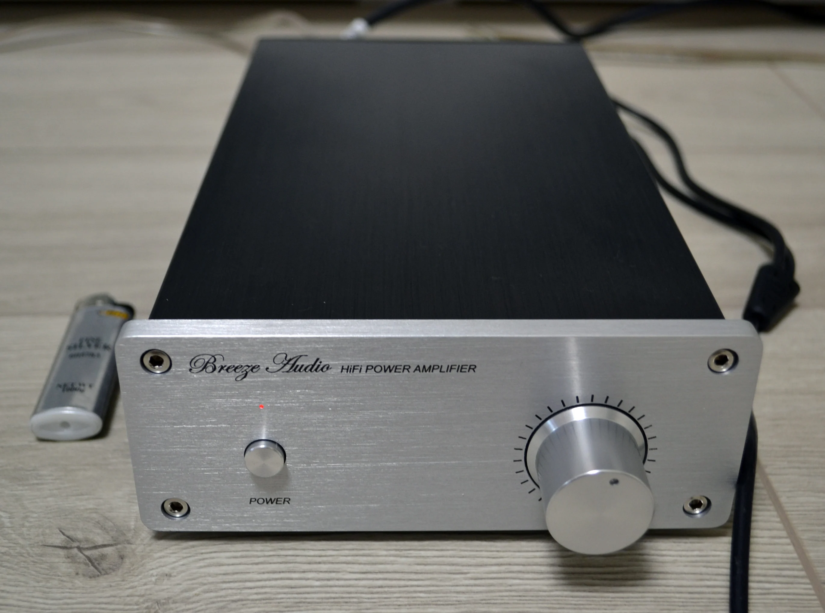Отличный усилитель за свои деньги, НЕ ФОНИТ , чем приятно удивил, на слух, искажений никаких, играет достойно! Оказался довольно маленьким, см. фото, зажигалка для масштаба. Не разбирал, не мерил параметры, возможно займусь когда-нибудь.. Выглядит отлично на столе, версию выбрал без блютуз. Усилитель ехал больше месяца, спасибо DPD, неделю забирали с таможни, курьер позвонил на 2 часа раньше, указанного смс срока, сообщил, что подъехал))