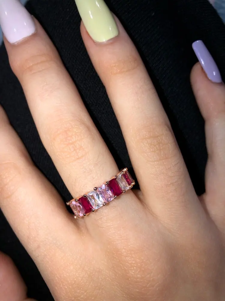 2022 Красочные Модные ювелирные изделия розовые Пинки пастельная Радуга Багет cz Вечность кольцо обручальное кольцо кольца 5 6 7 8 9