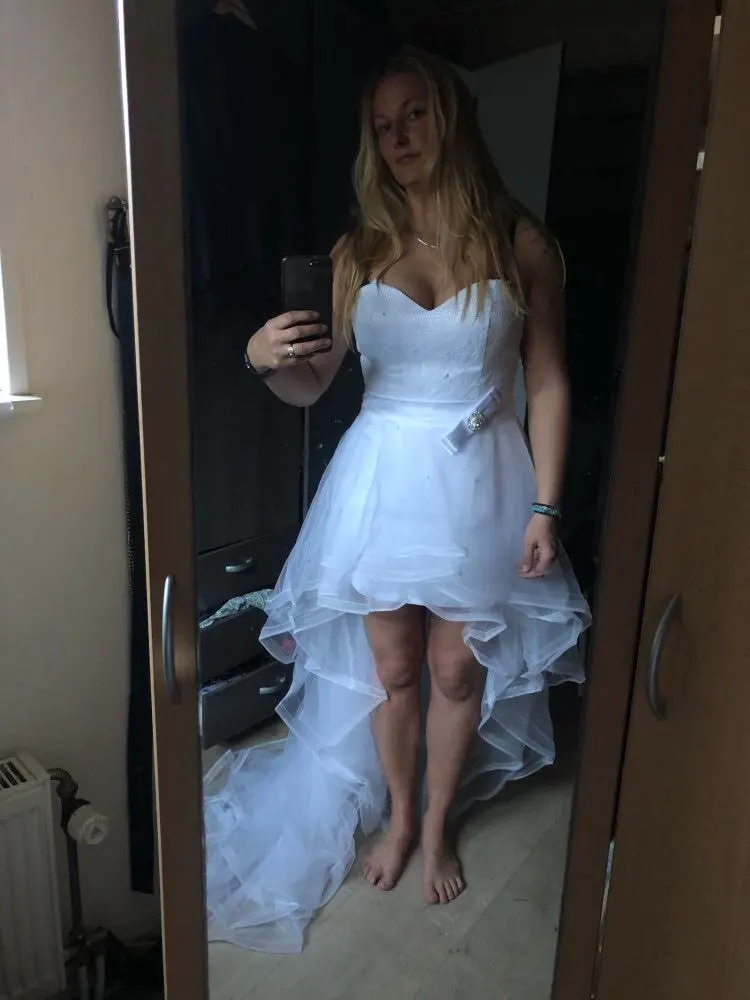 2022 Дешевое кружевное свадебное платье принцессы милое платье со съемным шлейфом без рукавов Бохо Короткая юбка для пляжа невесты простого размера плюс