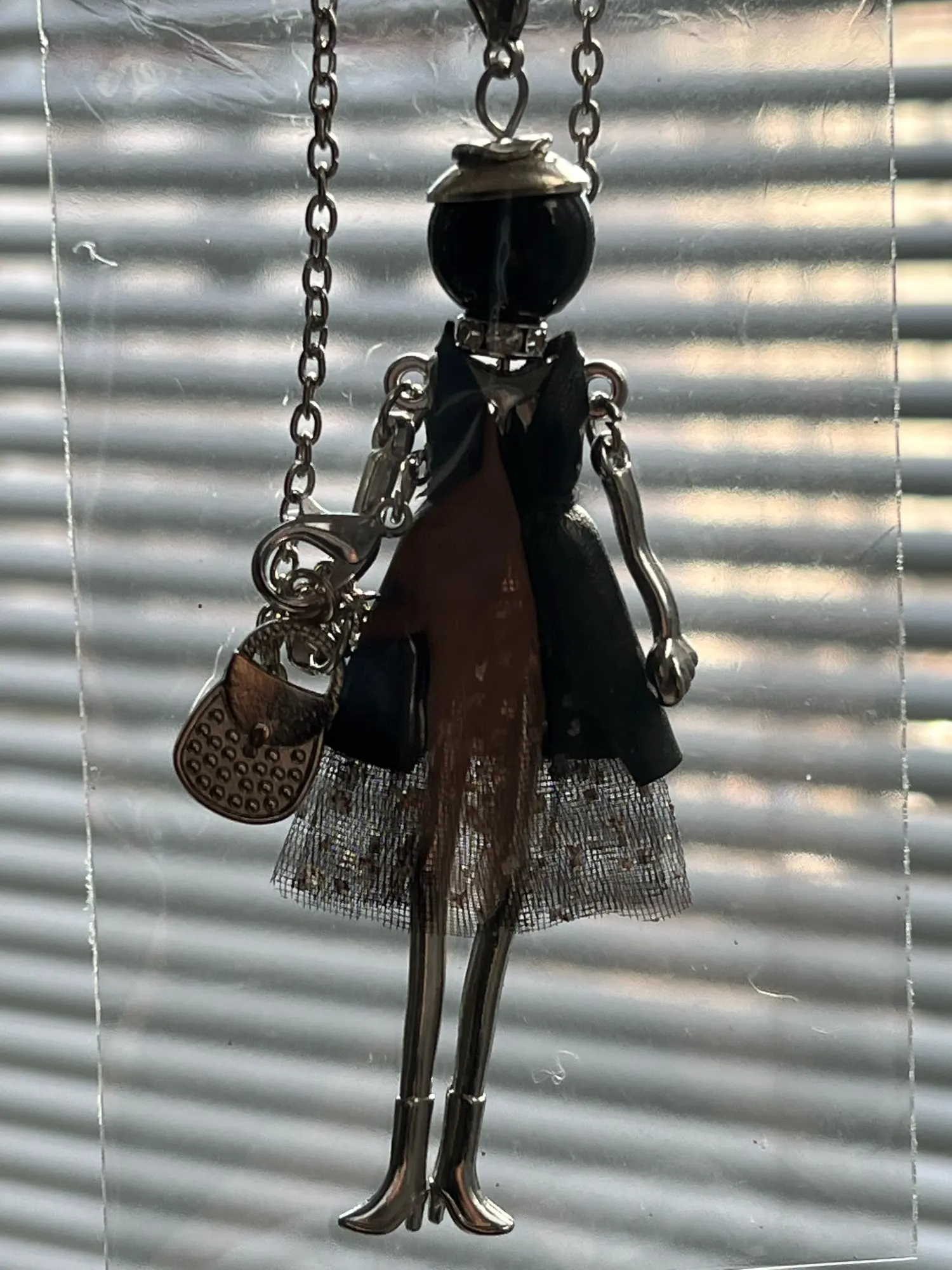 Симпатичная подвеска, ноги, руки,сумочка подвижные, смотрится необычно.