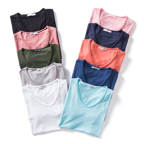 2022 Лето 5 шт. 100% однотонная хлопковая футболка для мужчин V образным вырезом с коротким рукавом повседневные мужские футболки мягкость высокого качества для мальчиков; Футболки