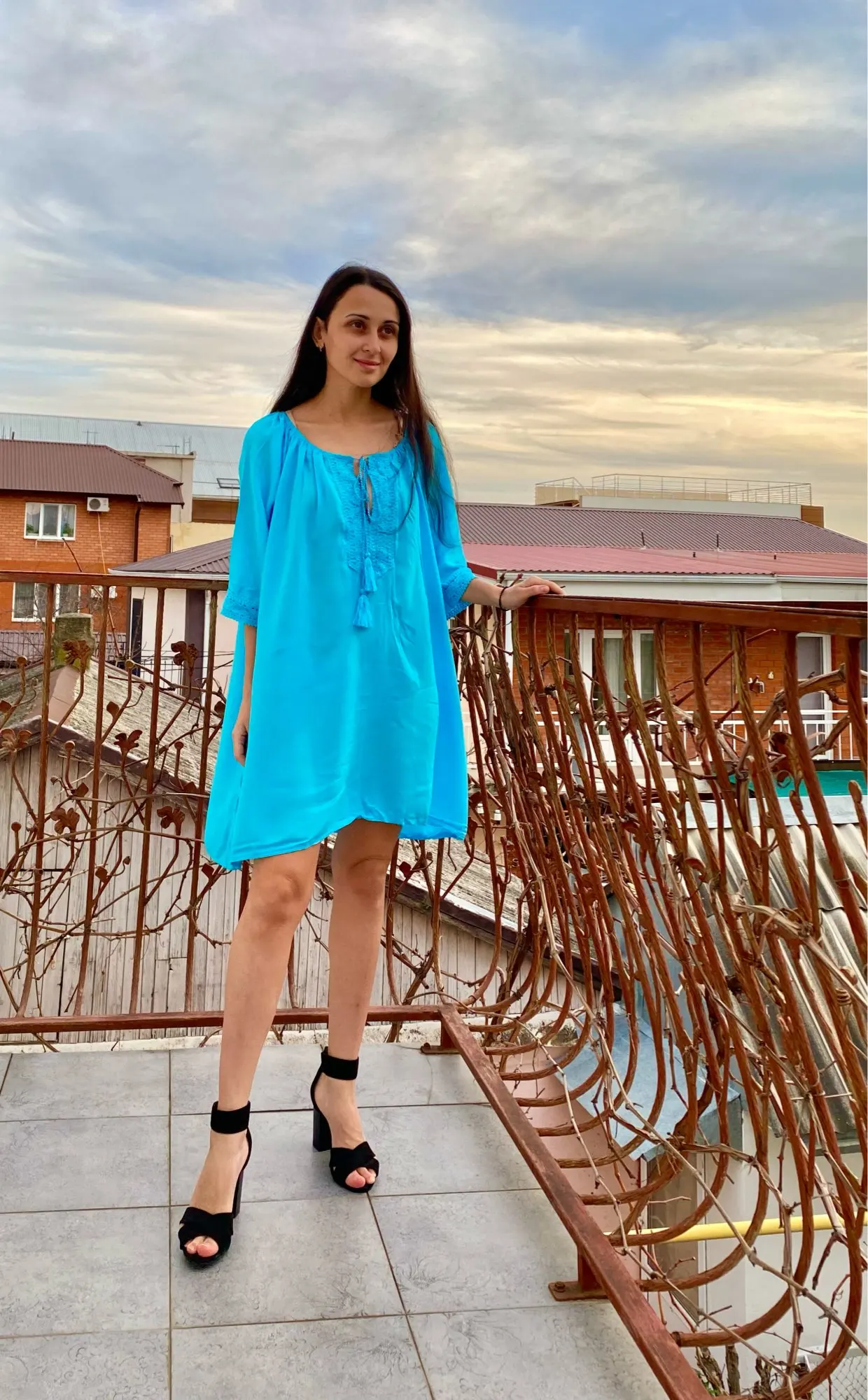 Ткань приятная, туника не такая как на картинке. Короче, до середины бедра.