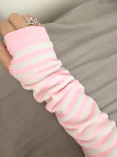 2022 Модные женские полосатые налокотники, теплые вязаные длинные перчатки без пальцев, налокотники, рождественские аксессуары, подарок