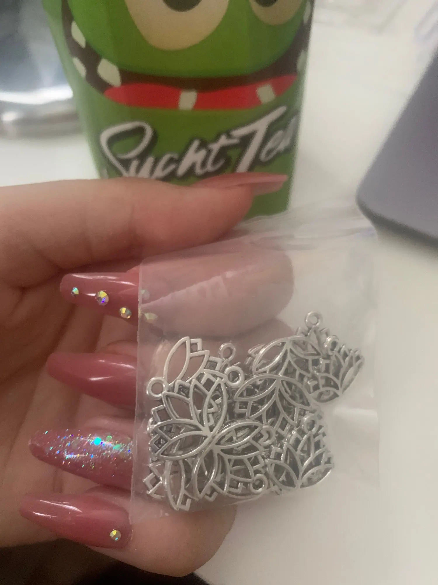 Пришло 21 шт, положили на 1 больше. СпасибоДоставка 20 дней до Екатеринбурга. Миленькие подвески. Буду заказывать ещё. Рекомендую продавца