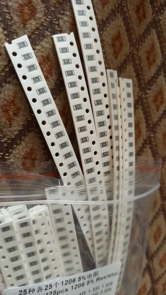 25valuesx25 шт. = 625 шт. 1206 SMD комплект резисторов (0R ~ 10R) 5% 100% новый и оригинальный чип сопротивления набор в ассортименте