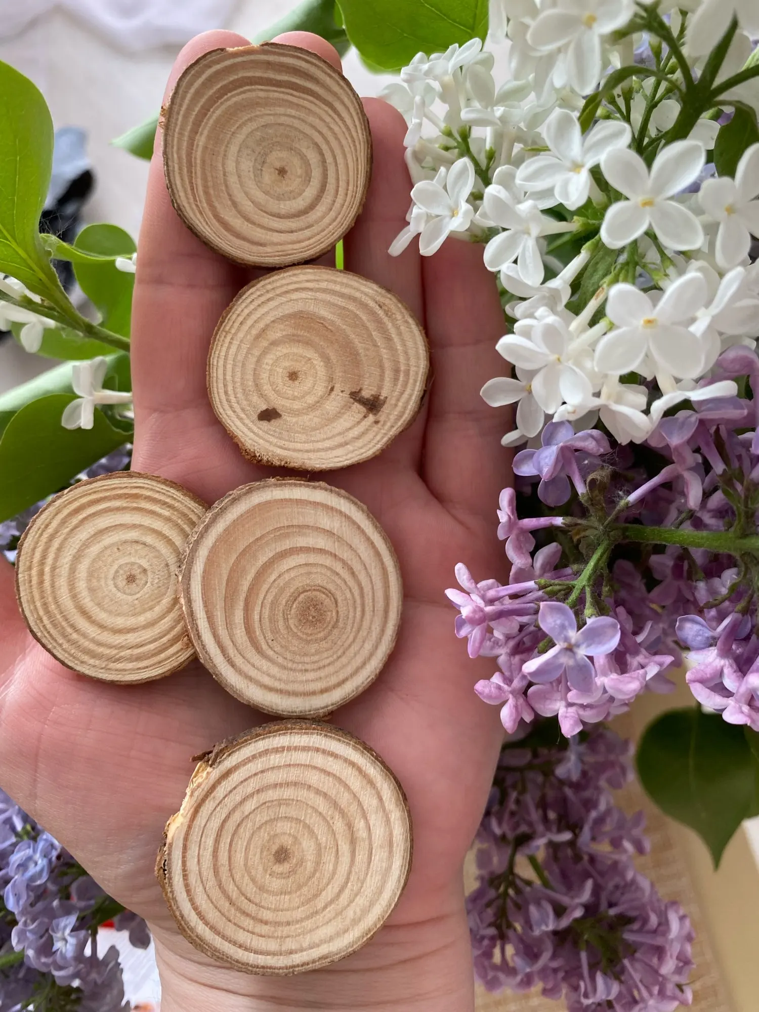 natural wood slices: