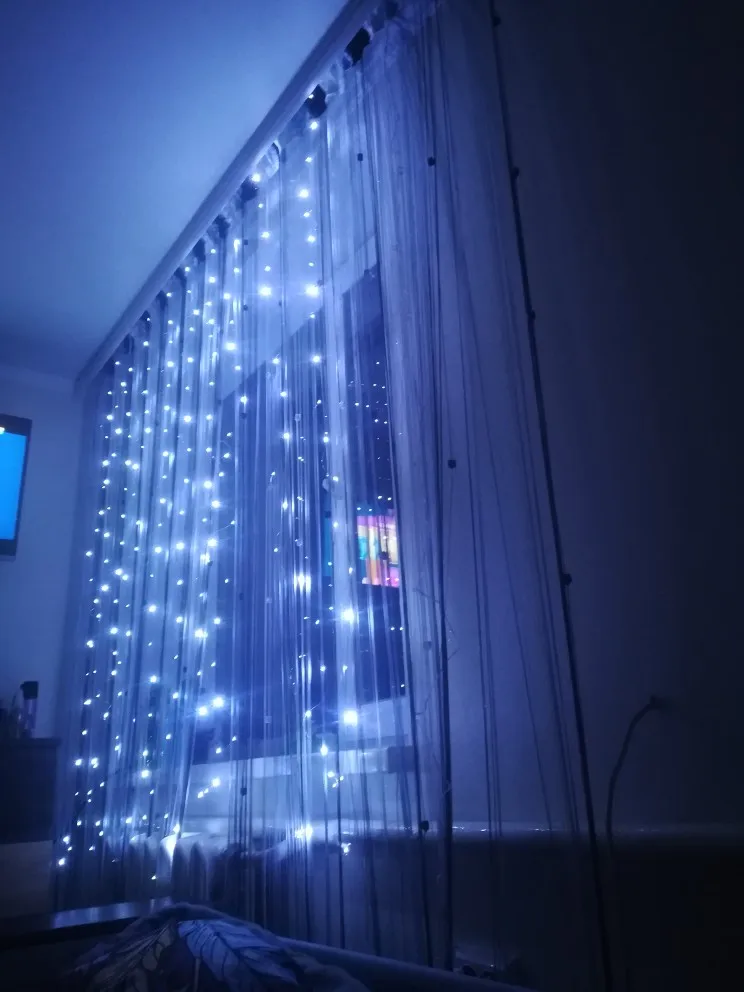 Посылка пришла довольно быстро .размотал и повесил на окно гирлянду .подключил к зарядке от телефона .что очень удобно . есть много режимов как оно будет блымкать .но из 10 полосок на 2х гирляндах не светится 1 линия крайняяя.немного это испортило общую картину .был Новый Год и упустил из виду а надо было бы спор открыть .так как вот как раз не хватает этой 10й полоски чтоб перекрыть всю стену .